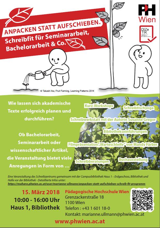 Der Workshop ist kostenlos, Anmeldungen bitte unter schreibzentrum@phwien.ac.at